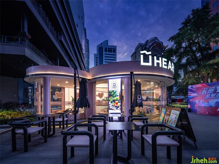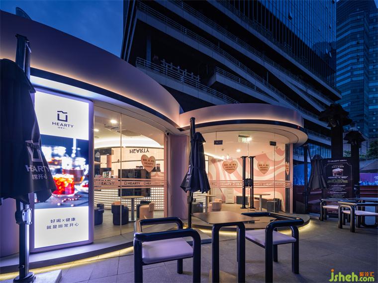 咖啡廳設計室內(nèi)圍繞弧形玻璃墻面放置的主題粉色玻璃鋼座椅和單體小圓凳,室外主題粉色網(wǎng)紅椅和深色網(wǎng)紅椅,搭配遮陽傘,使商業(yè)街游人能夠得到小憩空間,保證空間整體的連續(xù)性,巧妙的為顧客帶來一個既靈動又功能豐富的咖啡體驗場所。