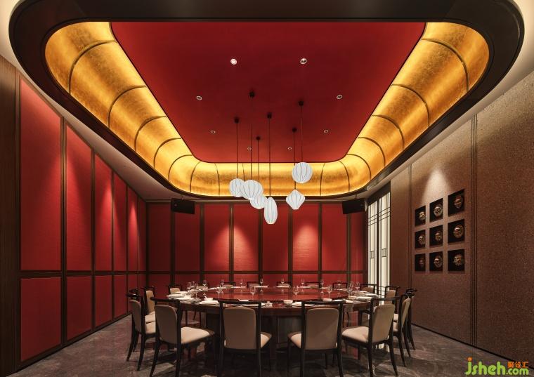 餐廳設(shè)計(jì)運(yùn)用了濃郁的紅色天鵝絨漆搭配金箔塑造輝煌的風(fēng)華,鋼化夾絲玻璃配合屏風(fēng)造型,塑造歲月痕跡風(fēng)華再現(xiàn)的空間。