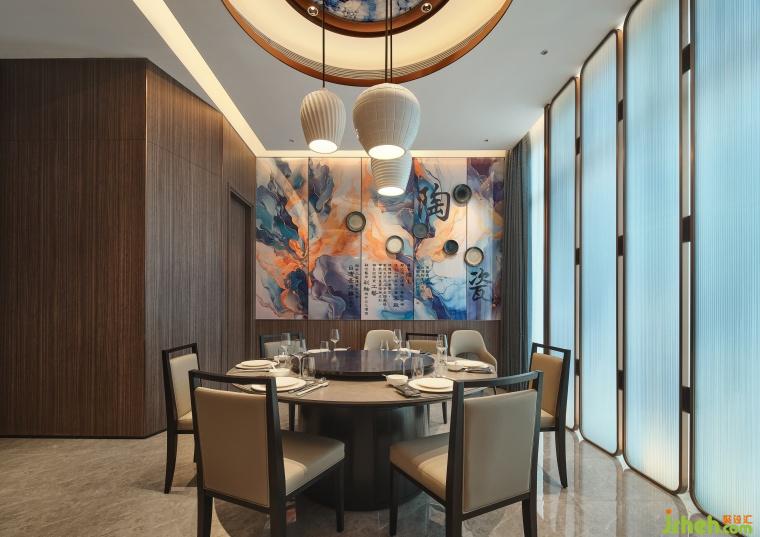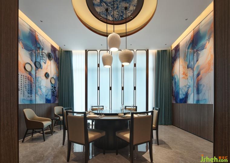 空間設(shè)計(jì)選用具有立體質(zhì)感的晶瓷畫輔助瓷盤裝飾提升空間藝術(shù)感,自帶朦朧光感濾鏡的屏風(fēng),夾絲工藝與長(zhǎng)虹玻璃的碰撞,素雅干凈的陶瓷燈具讓空間更顯高貴典雅。