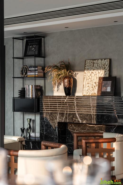 大地色自然風格作為疊翠的標志性設計,深淺格調與木質、金屬、石材等元素的運用,最終營造了整體沉穩(wěn)的暖意和靜雅的氣質,不浮于表面,刻寫在客廳空間場景的生動細節(jié)之中.