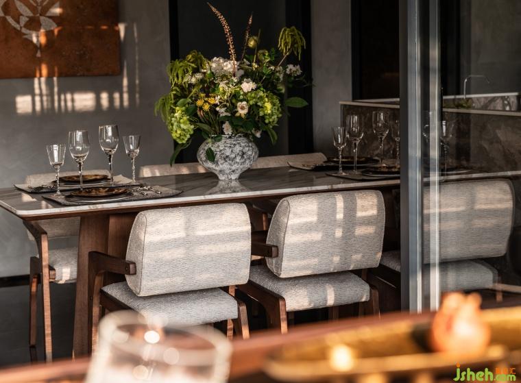 清風云色淡然,暖光在客餐廳區(qū)間泛起漣漪,開放式的用餐布局,令彼此的界限消弭不在,獲得在自然中煙火棲居之暢意。