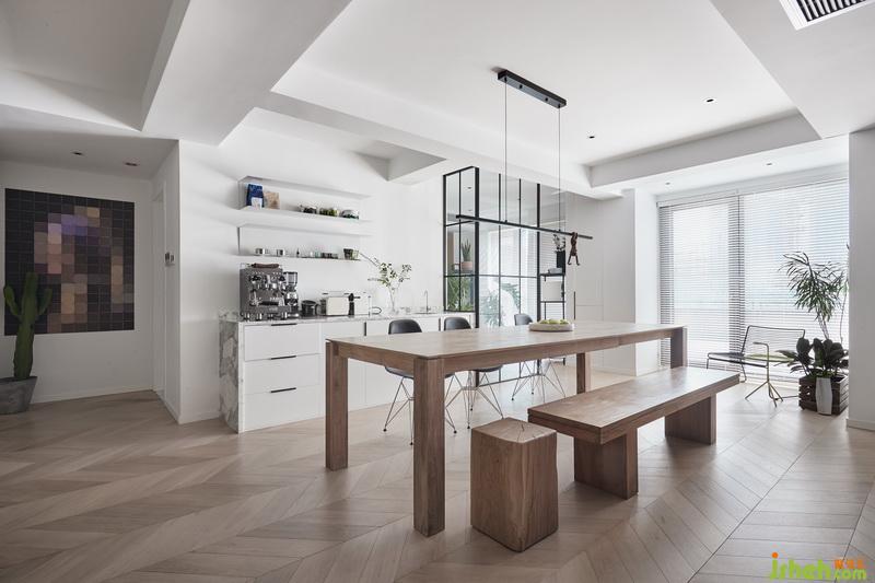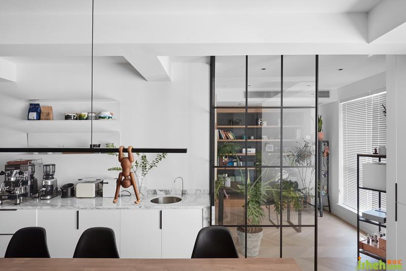 女業(yè)主是一個(gè)很愛生活的一位女性,最開始找設(shè)計(jì)的時(shí)候她希望家對(duì)于她來說,是一個(gè)逃避社交的地方,所以她希望家是舒適的,不用討好任何人。有時(shí)候甚至可以滿足她所有需求,以至于都不用出門。所以才會(huì)有咖啡機(jī),有投影,包括種植物,這些都是可以打發(fā)很多時(shí)間而又不覺得沉悶的。