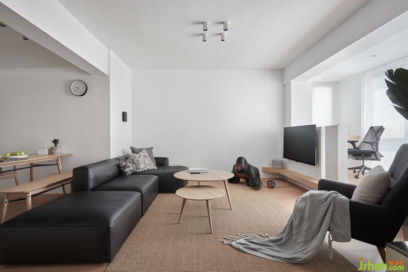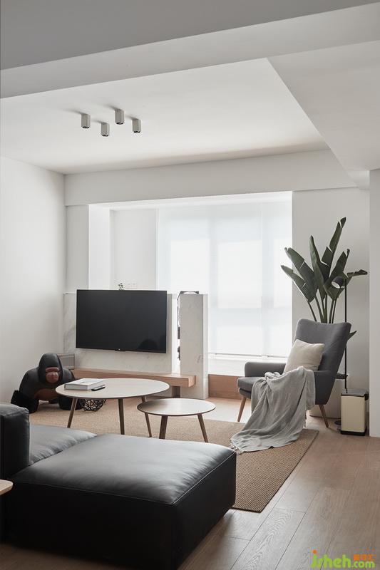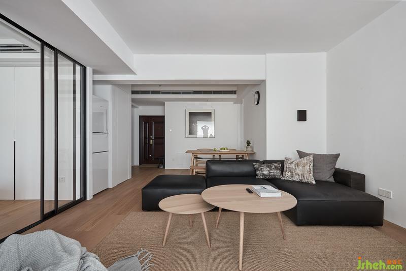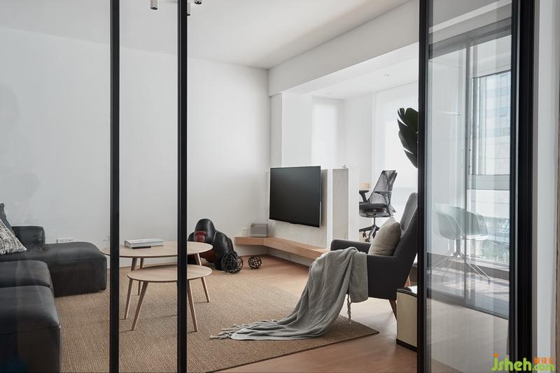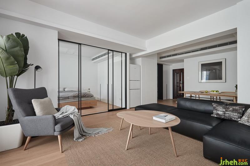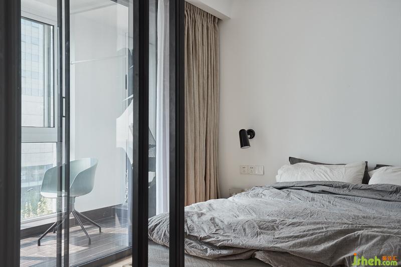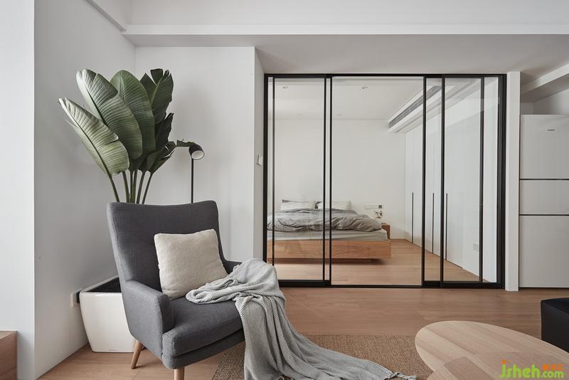 這是位于杭州城西的一所小戶型住宅。室內(nèi)設(shè)計(jì)師在與業(yè)主溝通后,了解到業(yè)主對(duì)于生活的理解正好與“Less is more”相一致,于是我們在滿足業(yè)主對(duì)于房屋的基本需求后,我們開始做減法,主臥與客餐廳區(qū)域室內(nèi)設(shè)計(jì)師利用玻璃移門形成通透的空間,相互貫穿,將空間模糊化,從而在視野上削弱了小戶型帶來的局促感。