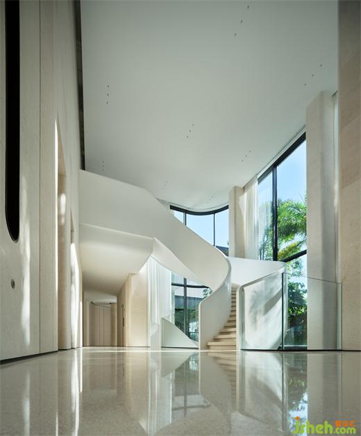 微風(fēng)輕拂過,激起層層漣漪。波瀾的啟迪下,我們找到了自然弧線的美感與韻律。這也成為旋轉(zhuǎn)樓梯的靈感,流暢線條優(yōu)雅地蜿蜒上升,既顯得輕盈無比,又透露著堅固的支撐力。如同漣漪般輕盈而富有彈性。