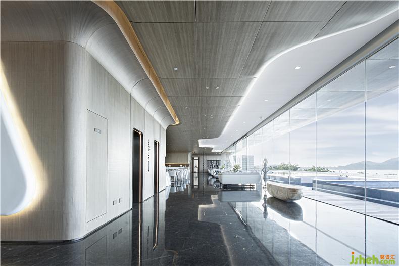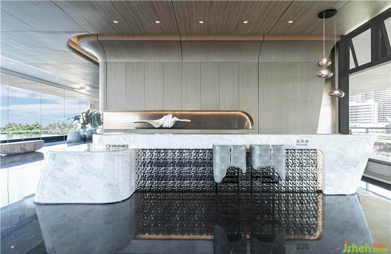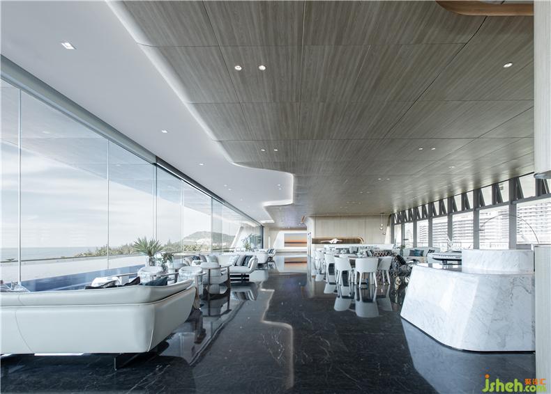SSID將天然的地理優(yōu)勢與萬寧獨特的文化屬性結(jié)合,將游輪的元素巧妙融合到室內(nèi)環(huán)境中,在有限的空間內(nèi)重組最佳動線設(shè)計。突破傳統(tǒng)售樓處固有印象,在設(shè)計中加以敘事的手法,以游輪概念為起點,將建筑、景觀及室內(nèi)設(shè)計三者融為一體。