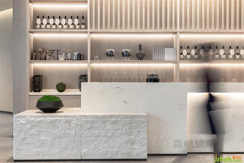 水吧洽談區(qū)細(xì)膩的木飾面和木格柵為空間帶來(lái)的光感讓賓客感受到陽(yáng)光的溫度,給賓客溫馨舒適的體驗(yàn)。米白色的水吧臺(tái)與臺(tái)面的體塊穿插,立體的營(yíng)造了充滿(mǎn)藝術(shù)觀感的視覺(jué)感受。身處空間中的人們,可以在質(zhì)樸溫和的沉浸體驗(yàn)環(huán)境中,放下都市生活的疲憊與壓抑,感受片刻的美好。