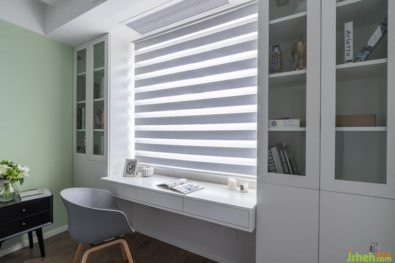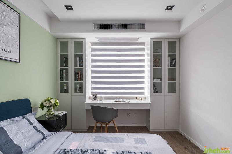次臥主要還是以居家舒適為主,淡綠色的乳膠漆搭配簡潔的家具形式,輕松而愉悅。