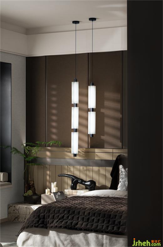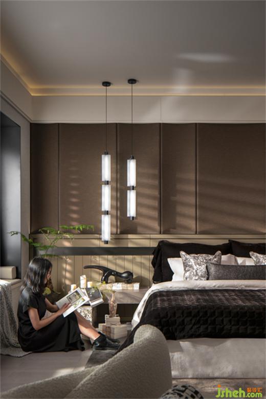 大空間主臥是該項目的一大亮點,入室即可感受此空間帶來的非凡氣質(zhì),樣板房設(shè)計設(shè)計師在主臥著筆勾勒東方典雅的氣質(zhì),在東方的雅和當(dāng)代的藝術(shù)之間達(dá)成微妙的平衡。