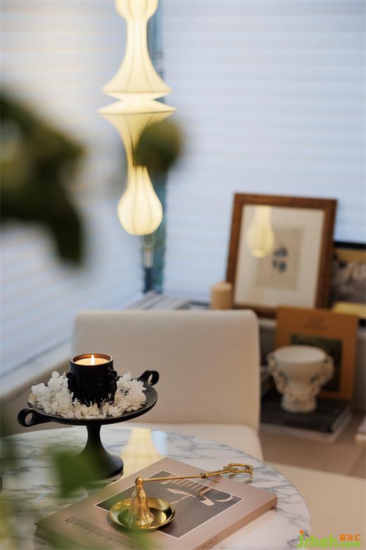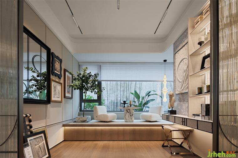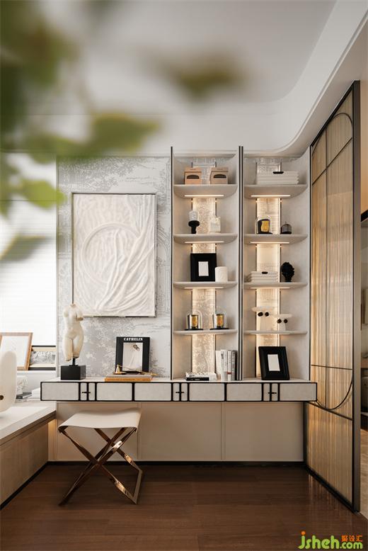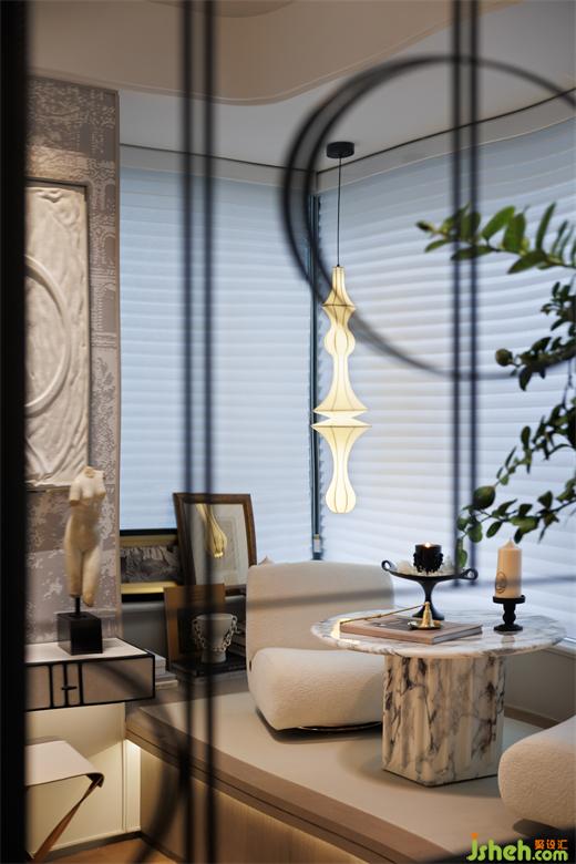 樣板間設(shè)計(jì)利用飄窗臺(tái)的層級(jí)設(shè)計(jì),擺置小茶幾和落地椅,這里可以是書房,也可以是二次起居室,還可以是愛好展覽室,表達(dá)藝術(shù)世界里的內(nèi)心色彩。