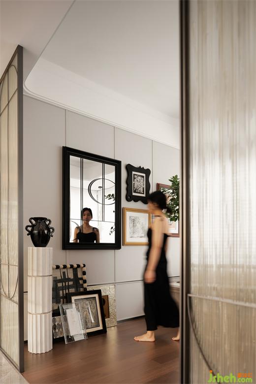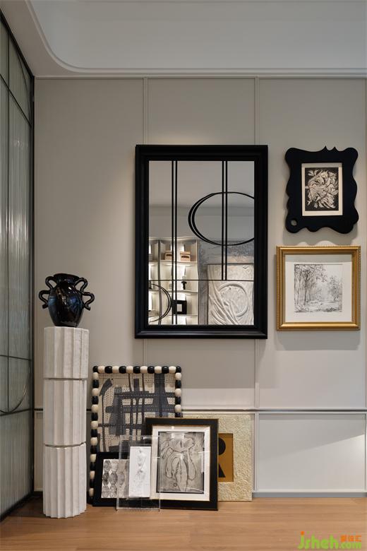 白色作為書房空間的主基調(diào),營(yíng)造清新寧?kù)o的氛圍,浮雕畫如同輕柔的呼吸,賦予了空間靈魂,幾何線條交織,勾勒出優(yōu)雅韻味。