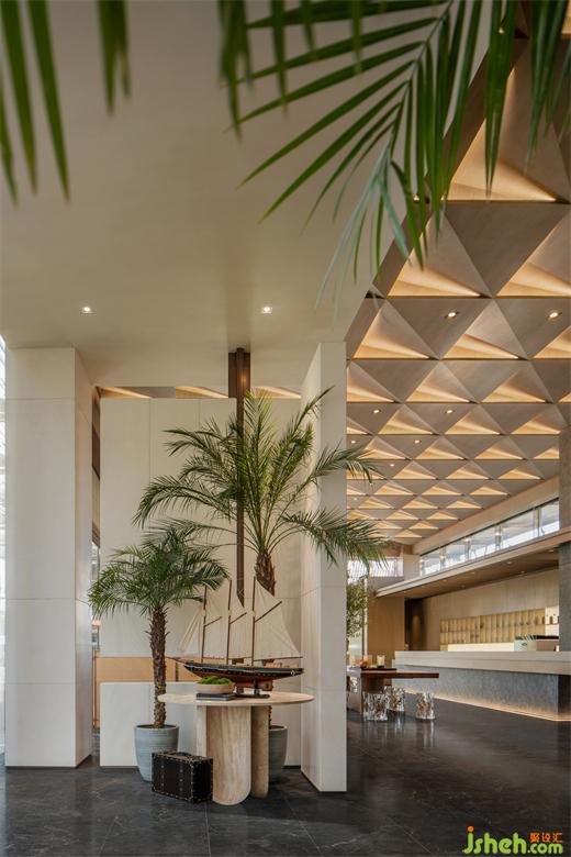售樓處設(shè)計(jì)空間的角落打造椰林般的熱帶氛圍,飽滿(mǎn)的深綠色中感受夏日的一片清涼,散發(fā)著源源不斷的生命力。