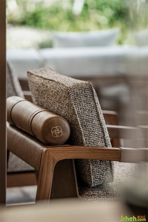 選用布面材質(zhì)的座椅和貼近日光顏色的米色藤布,斑駁的光影如同時(shí)間的筆觸落在空間里,增添了一份歲月的沉淀。