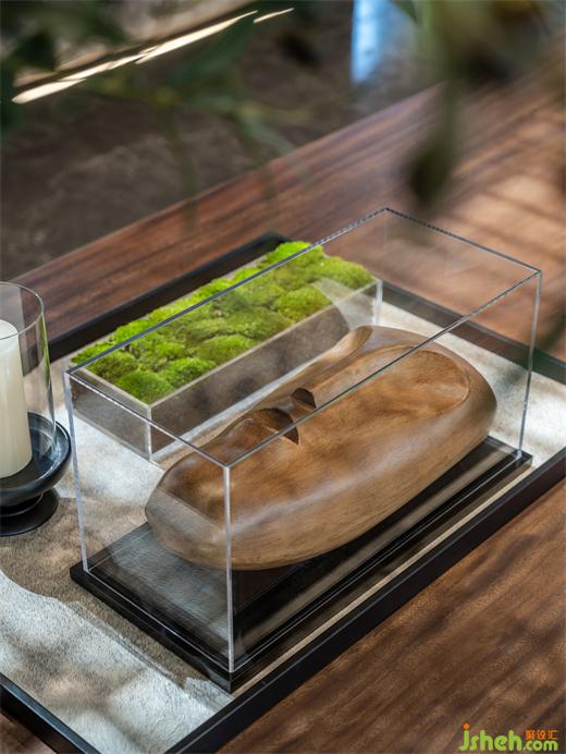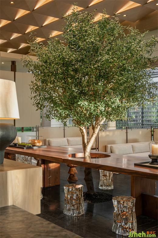 原木材質(zhì)為主的空間帶來(lái)令人放松親近的大自然氣息,綠樹(shù)的環(huán)繞下,模糊了室內(nèi)外的界限,人與自然可以隨時(shí)互動(dòng)。