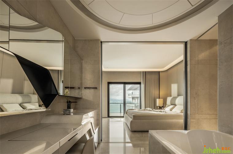 浴缸由意大利衛(wèi)浴制造之最的CALYX打造,標志性的軟體荒料材質可根據身體形狀的而變形,三亞私宅設計保證安全性的基礎上,帶來極致的沐浴感受。