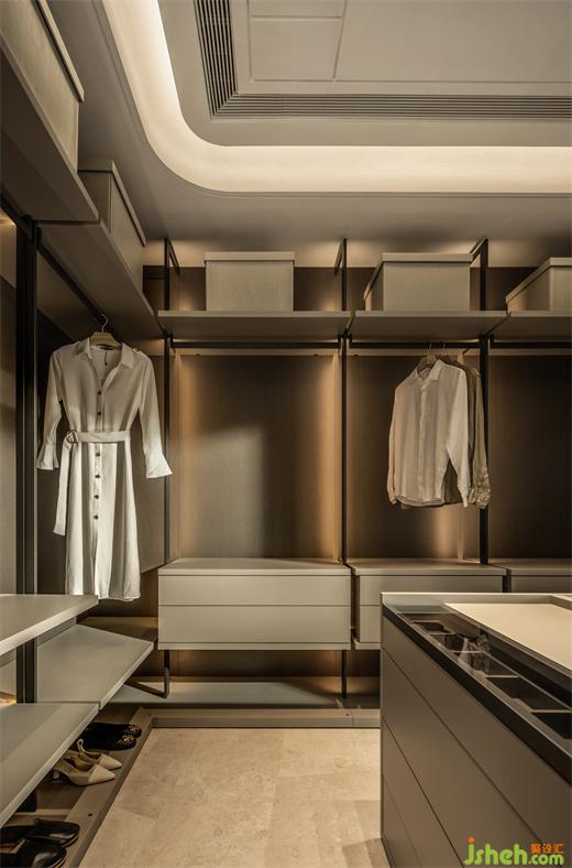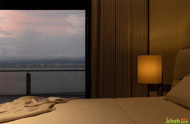 空間線條如綿延流暢的海岸線,一直延伸到每個空間,形成連貫的起居動線。白色燈具護著和煦的暖光,邂逅落日向晚的浪漫。