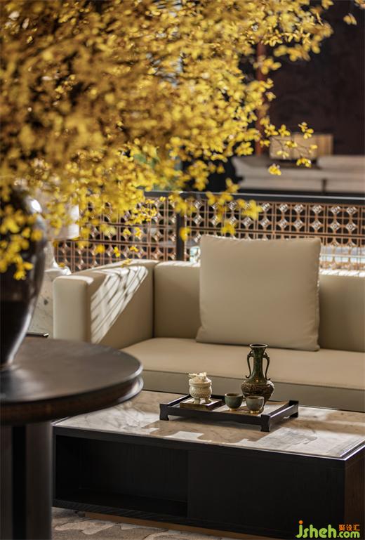 紅色與國人糾纏了數(shù)千年,既攀上了王者的衣裳,也沾染了女兒的香腮,如今它已成為我們心頭的信仰。作為茶室的主色調(diào),與青綠山水畫交相輝映,展現(xiàn)出一種深厚而優(yōu)雅的底蘊。