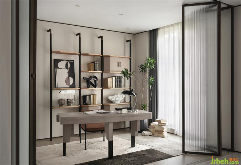 書房看似沒有與客廳任何明顯的分割,自由隨性,但當(dāng)拉上那扇門,成都樣板房設(shè)計便可以安放澄澈的心靈,感受內(nèi)心的富足與安定。