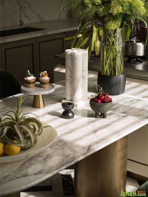 餐廚一體,用了偏西方的設(shè)計(jì)方式,但其實(shí)是以更符合當(dāng)代人的生活習(xí)慣而進(jìn)行設(shè)計(jì)。居住者喜愛在家舉辦宴會(huì),更開放的空間形態(tài),滿足人與之間的溝通,而與戶外相連的設(shè)計(jì),也讓人與自然之間形成了更深的連接。