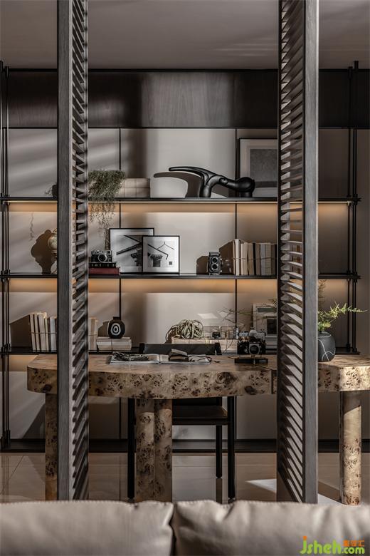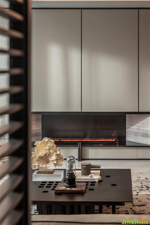 “空間亦能傳達(dá)情緒”,蘇州樣板房設(shè)計(jì)將傳統(tǒng)園林中的窗景演化成桌面,穿插金屬線條、線性塊面的表現(xiàn),空間儒雅矜貴,大氣而擁有張力。