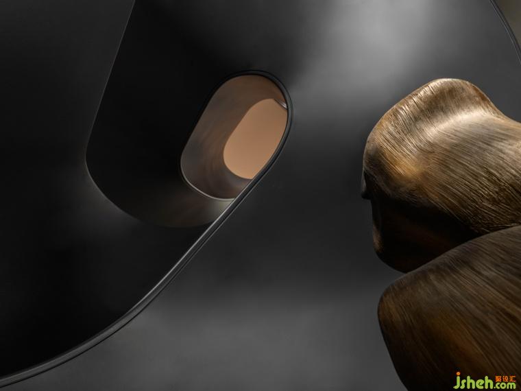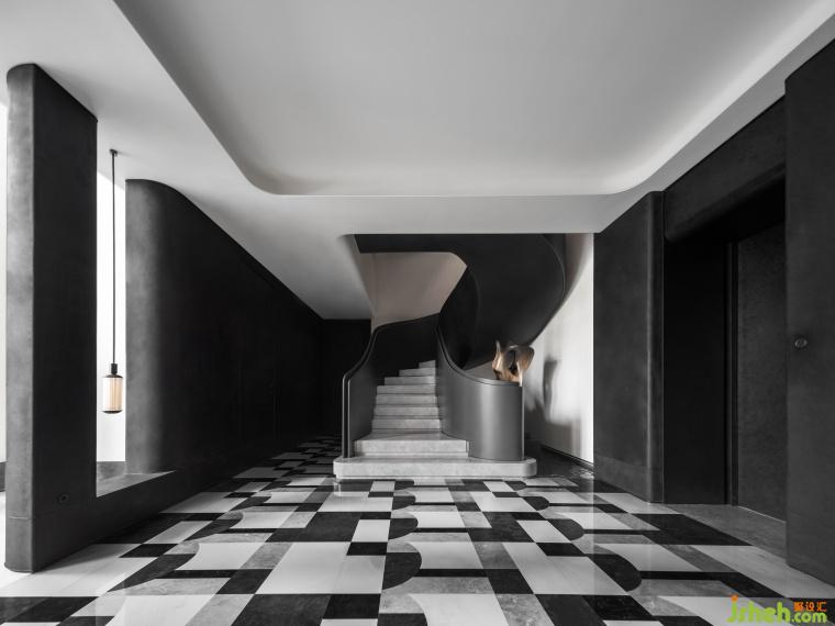 深色調(diào)的石面承載著復(fù)古奢華,與簡白的空間呼應(yīng),樓梯優(yōu)雅的曲線不斷調(diào)動著五感,讓人全身心融入到這恢弘壯麗而又平和寧靜的氛圍中。