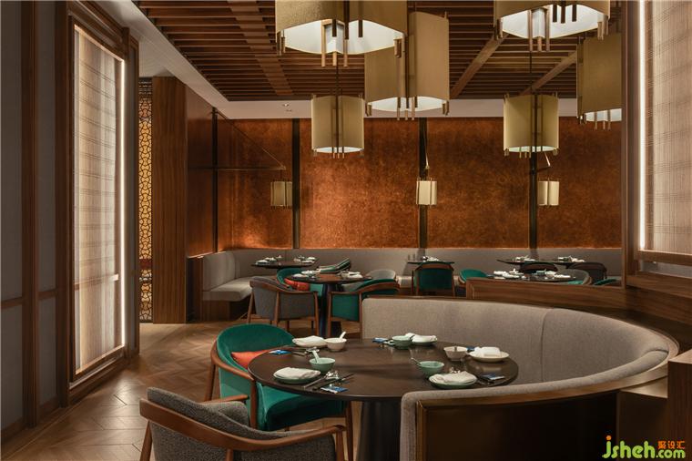 進(jìn)入中餐廳會(huì)發(fā)現(xiàn):大片古樸楓紅環(huán)圍,素白經(jīng)緯交錯(cuò)的隔斷,點(diǎn)點(diǎn)紗燈浮空,如江上漁火照亮夜色,衣香鬢影中恍惚置身朱墻庭院,你我正對(duì)時(shí)代舉杯。