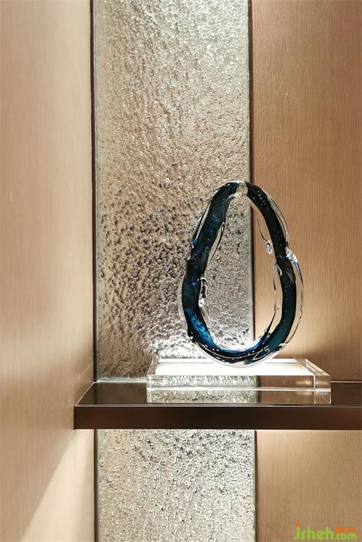 原木色的溫潤氣質(zhì)柔和了空間,墻面藝術(shù)掛飾以抽象極簡的現(xiàn)代手法再現(xiàn)「海浪」和「海灘」,形成海與沙、動與靜、平與凸的強烈對比,讓賓客在靜謐的空間氛圍裏「享.靜夜」。
