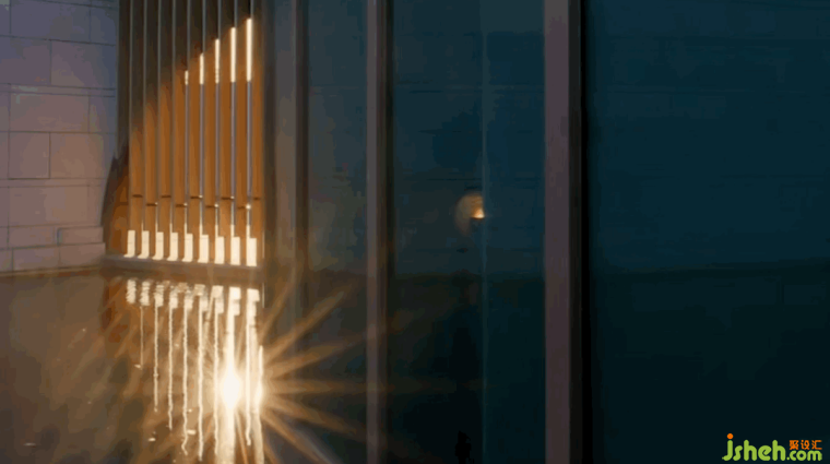 通透玻璃磚與相城十絕中的御窯金磚,似長詞短句,裁綴雅致簾幕,予人庇護并營造若隱若現(xiàn)的朦朧意韻。青綠水墨暈染總臺屏風(fēng)、天花上魚戲圖動態(tài)投影、湖藍家具與地毯,處處氤氳著江南詩意。