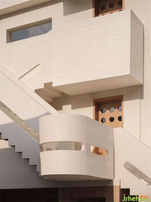 待到日光劃過正午的脊背,緩緩爬上云層似的階梯,暖白的微水泥抹面捕捉光走過的聲音,在凹凸與平滑間游戲,停頓在環(huán)抱的休憩處低語,細(xì)密的流露出時(shí)間的聲息。