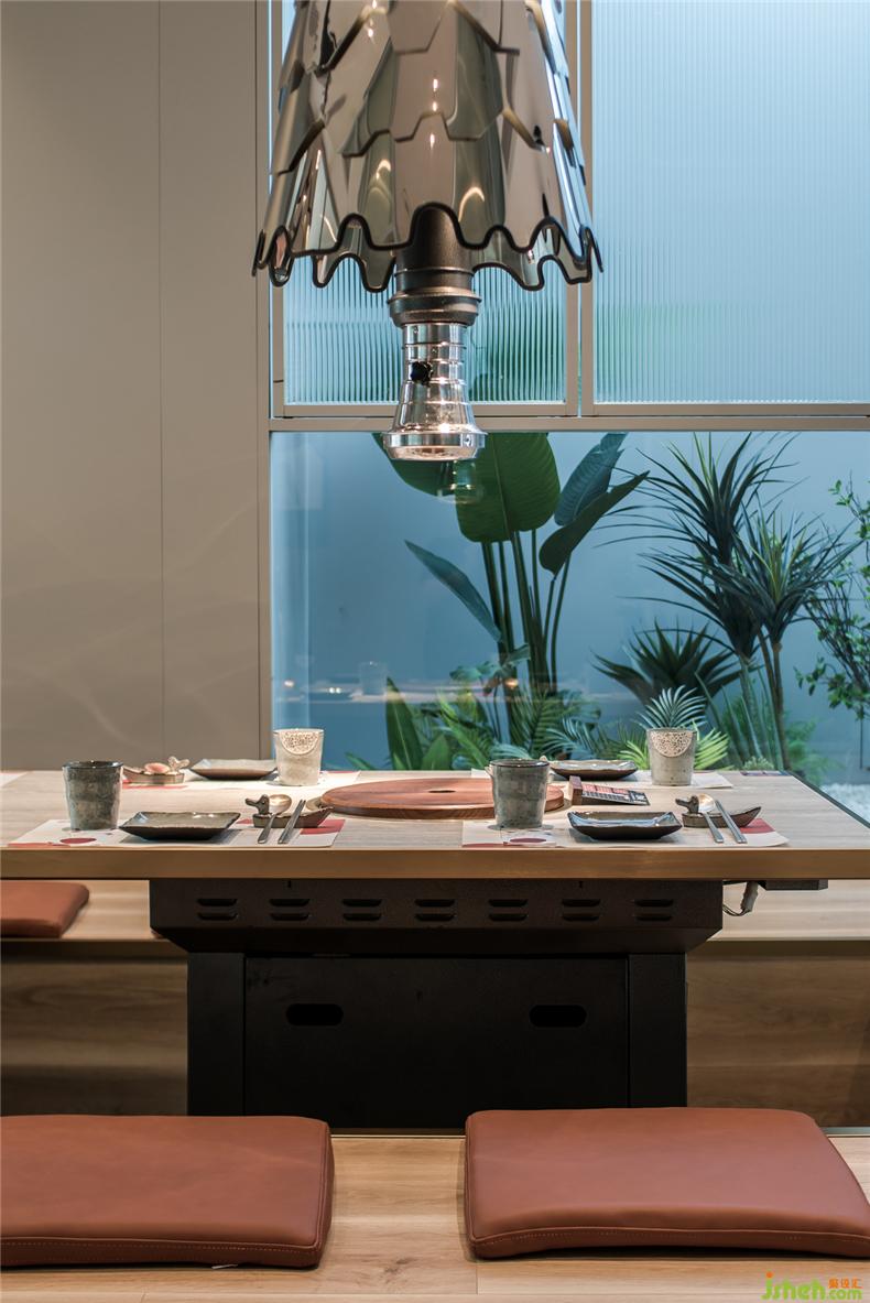 燈具外觀與整體裝飾保持一致,通過角度、功率、光束角的差異化處理,適度控制明暗對比去選擇性的引導(dǎo)空間主次。結(jié)合金屬板、屋面天花,照明干凈利落。餐廳設(shè)計