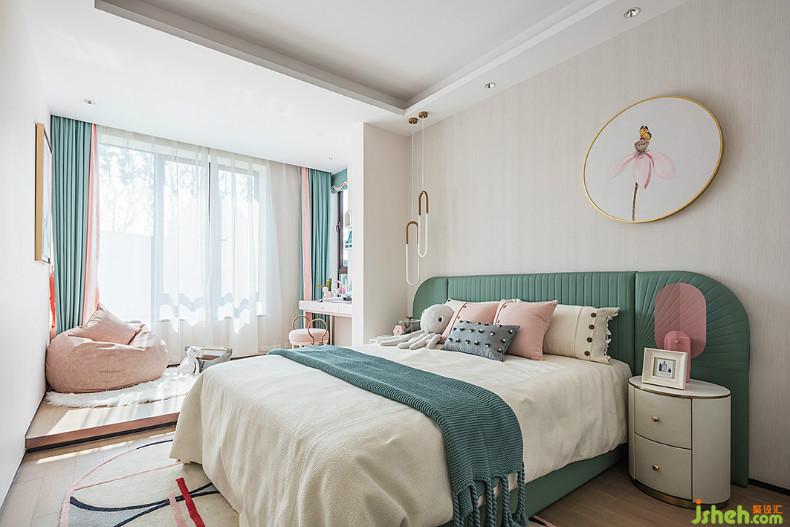 兒童房以粉綠的淺色調(diào)著筆,細(xì)致地摹畫出小女孩內(nèi)心深處的世界,文藝且清新。