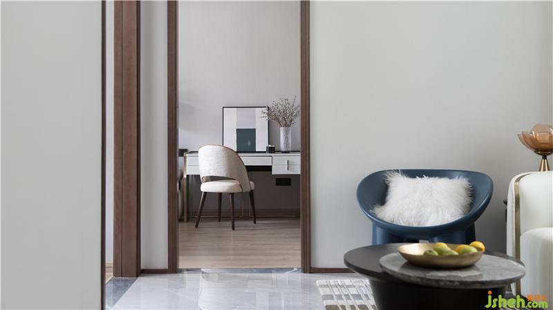 陽光下,只讓光的暈染指引思緒蔓延,蔓延至主臥,隔斷的屏風(fēng)視線卻未被完全阻隔。由兩道步入,是豁然開朗的衣帽間。衣帽間與主臥隱約窺見,尊貴與舒適并存于此。