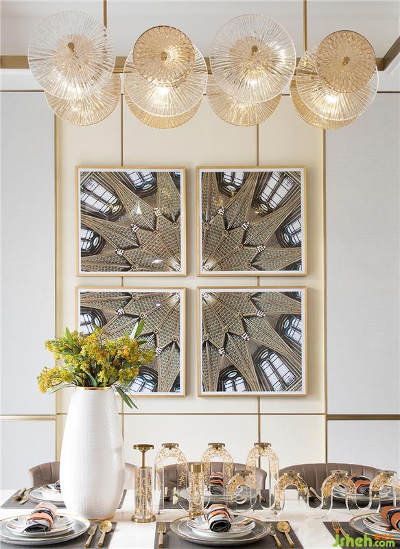 餐廳是彰顯空間細(xì)節(jié)和質(zhì)感的重要空間,酒具的質(zhì)感則體現(xiàn)在通透而帶著雕刻細(xì)節(jié)的紅酒杯與金屬醒酒器,這些飾品的色彩也與客廳的顏色相呼應(yīng)并與大理石桌面區(qū)分開成為整個(gè)空間的視覺中心。