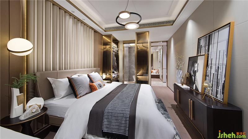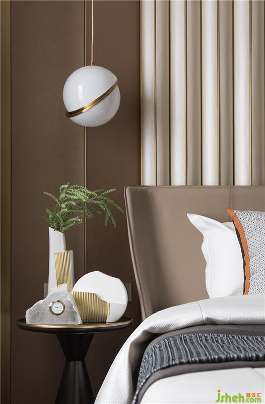主臥的飾品彰顯主人精致的生活品味,衣帽間的擺放也以皮革與金屬為主,一副口紅裝飾畫表現(xiàn)出主人對(duì)生活情趣的極高要求。
