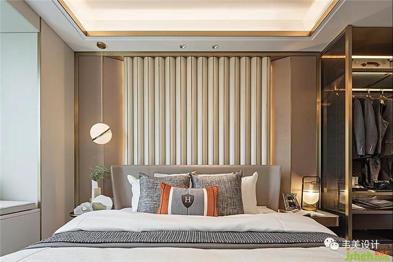 主臥的線條簡約而精致,床品上的選擇也沿用港式經(jīng)典元素——毛呢,在簡潔中透露出紳士般的優(yōu)雅,低調(diào)而不張揚(yáng)。