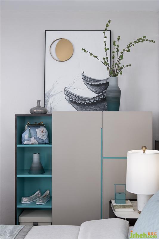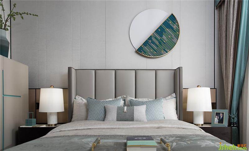 長(zhǎng)輩一片祥和的氛圍。屋檐上弦月將盡,天色漸明。晨色下的綠竹掛畫挺秀青翠,與床品窗簾相互襯應(yīng)。