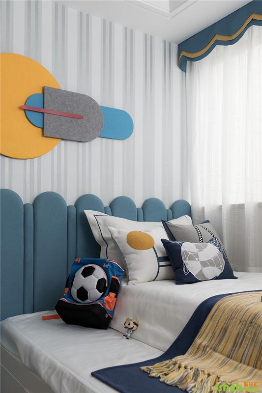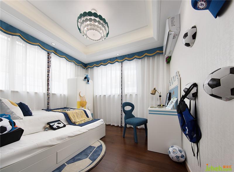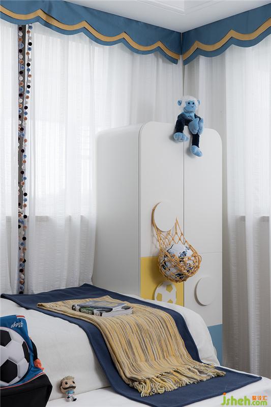兒童房的設(shè)計(jì)上,設(shè)計(jì)師的初衷是打造一個(gè)實(shí)用并可以伴隨孩子成長(zhǎng)的空間。所以在這個(gè)小小的空間內(nèi),涵蓋了孩子娛樂(lè)、學(xué)習(xí)、休息、儲(chǔ)物等生活動(dòng)態(tài)。