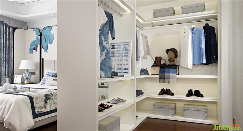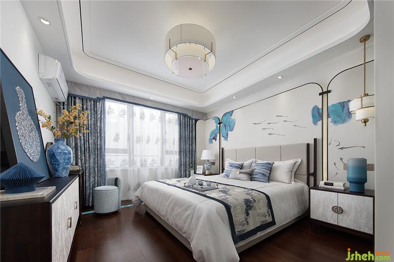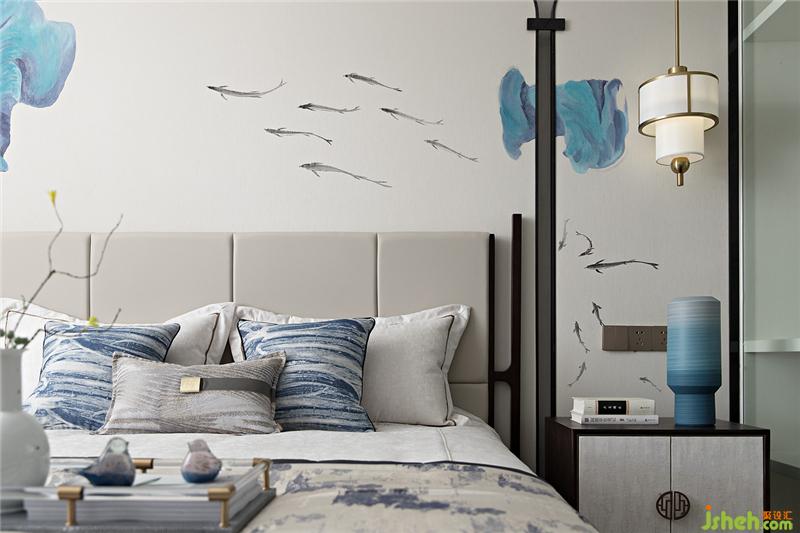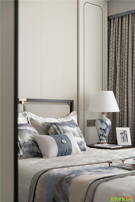 如果說元青花是雄渾大氣,那么明代永宣青花就是清雅樸素,超凡脫俗。主臥設(shè)計上,設(shè)計師融入明代永宣青花的特點,屏風錯落的散暈斑點有如水墨畫的墨暈,淡淡暈染出超然之境。雅致簡潔的家具在有序的坐落間有水墨青花散落開來,沁染心神。