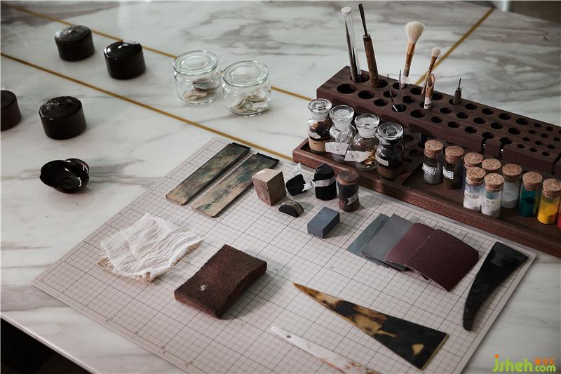 在工作區(qū)域我們提出“融居”的設計概念,讓漆藝的傳承、展示與生活為一體。大漆是有生命的,它在歲月與生活中不斷磨礪,當傳承傳統(tǒng)工藝的歷史使命混合當代人居氛圍,自然而融洽地演化出極具活力與藝術的現(xiàn)代精英氣息。