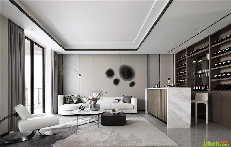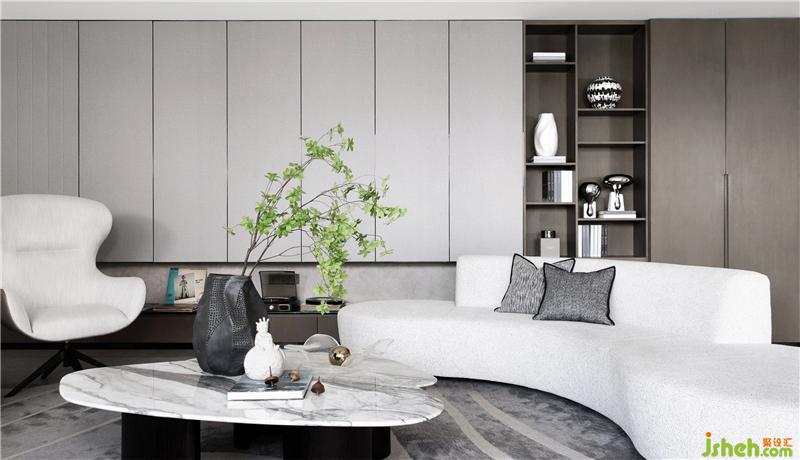 從“重塑日?!钡乃伎键c(diǎn)出發(fā),我們優(yōu)化了樣板間家庭廳原本的常規(guī)布局,樣板房設(shè)計(jì)將原本的縱向格局用軟裝家具圍合的方式“畫圈為地”優(yōu)化,確保視線的舒適性,來提高居宅的品質(zhì)訴求。