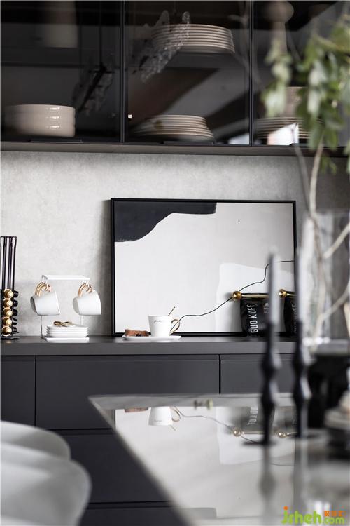 雙動(dòng)線的設(shè)計(jì)在這一隅開闊的空間中顯得游刃有余,品酒區(qū)與手工區(qū)空間既有界限又相互溝通,樣板房設(shè)計(jì)我們?cè)诙嘣木幼《x的思考下,將此打造為放飛想象制造泥塑的手工空間,在動(dòng)線的開合中更多了一些社交的空間表述,帶來宅居的全新體驗(yàn)。