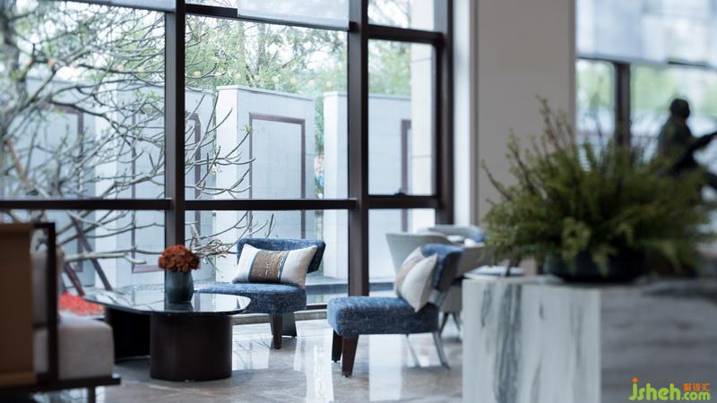 洽談區(qū)整體呈開放式的空間布局,卻又具有各自獨(dú)立區(qū)域,室內(nèi)設(shè)計(jì)師保留現(xiàn)代設(shè)計(jì)感,將濃郁的東方風(fēng)韻潛移默化地融入設(shè)計(jì)之中,加以落地玻璃的借景手法,開闊平坦的絕佳視野,一石,一樹,一紗,虛實(shí)寫意,可謂:“不知城市有山林,謝公丘壑應(yīng)無(wú)負(fù)”。