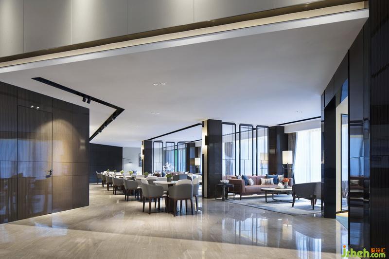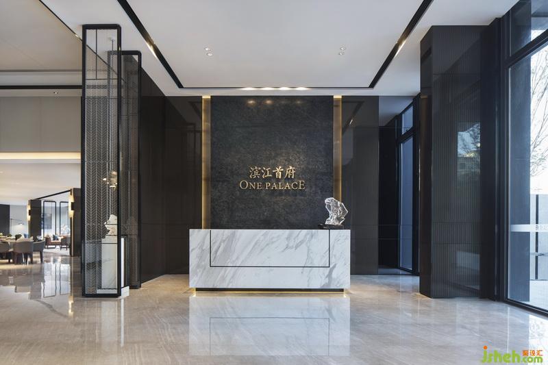 首先一進(jìn)入接待大廳,簡約現(xiàn)代的空間線條勾勒出輕緩的文化氛圍。接待臺上室內(nèi)設(shè)計師選用山水紋理的玉石,結(jié)合不銹鋼金屬吊燈,在細(xì)節(jié)處透露出當(dāng)代風(fēng)范。