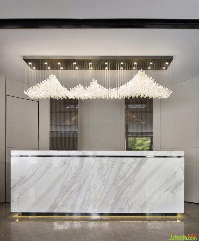 沒有強烈的顏色碰撞,低調(diào)的色彩一如內(nèi)斂的中式文化。米色調(diào)的輕暖,灰色調(diào)的質(zhì)感,室內(nèi)設(shè)計師再巧妙搭配仿山巒起伏的藝術(shù)吊燈,在傾斜的陽光下,有一種默契和互動關(guān)系在其間醞釀,讓置身于其中的人感受優(yōu)美和諧。