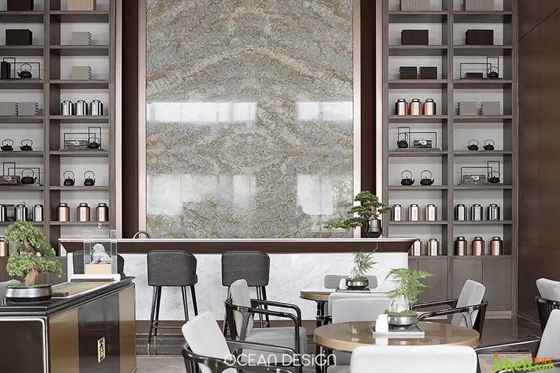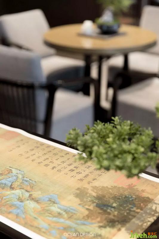 走進(jìn)VIP室,東方氣息撲面而來。為了實(shí)現(xiàn)空間的妙趣與美,設(shè)計(jì)師以抽象典雅的山水為形,復(fù)古簡約為意,大面積的“濃墨鋪陳、淡墨作敘”,還原東方的風(fēng)度,彰顯君子的雅致。
