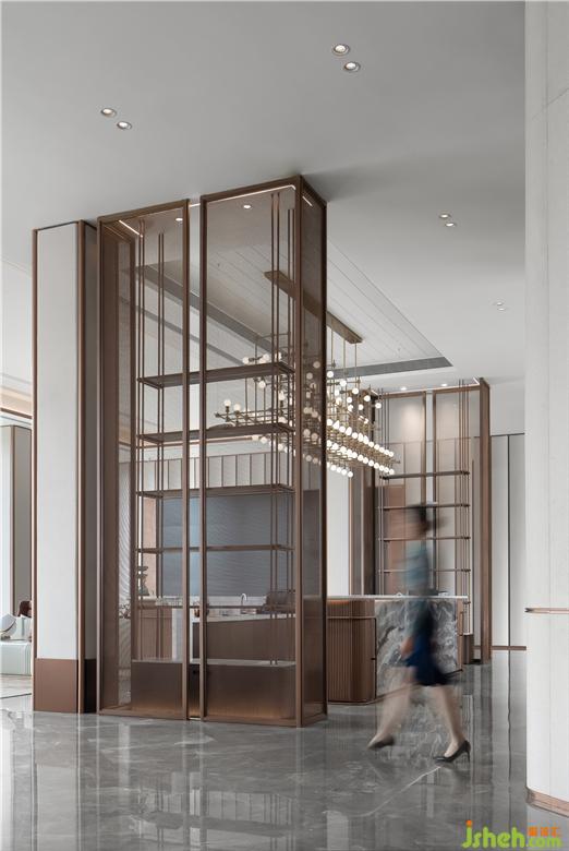 看似無意的點(diǎn)狀光源,通過點(diǎn)與面的交會互動,使其呈現(xiàn)出光影投射之后斑駁閃爍的律動??臻g在光與輕盈的金屬板的結(jié)合下,被阻隔分為一個個小空間,讓人更能感受當(dāng)下光影瞬間。