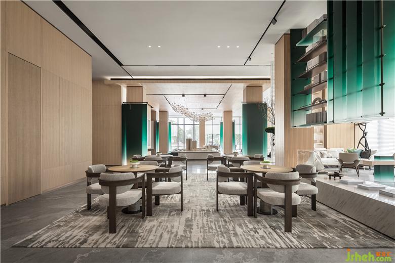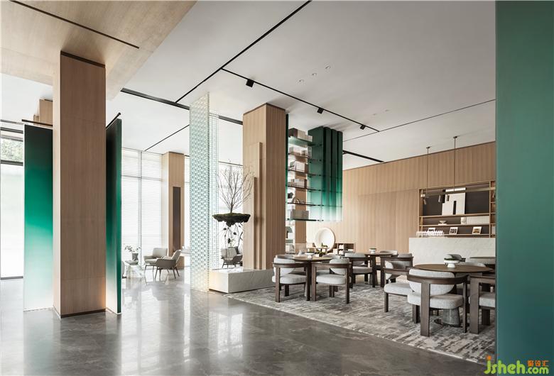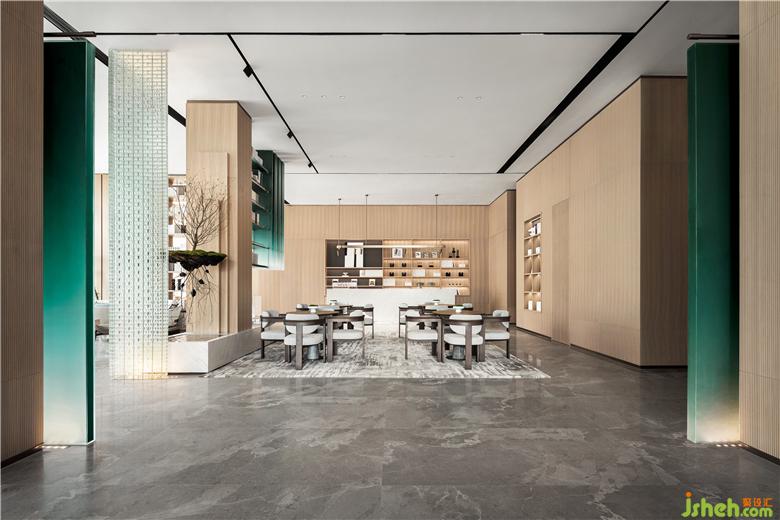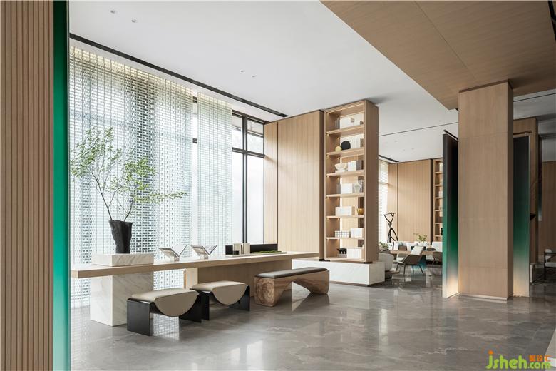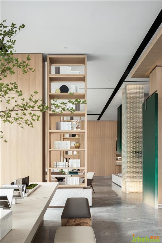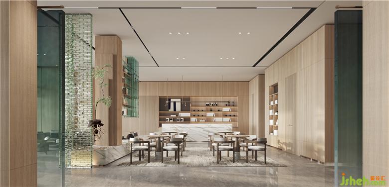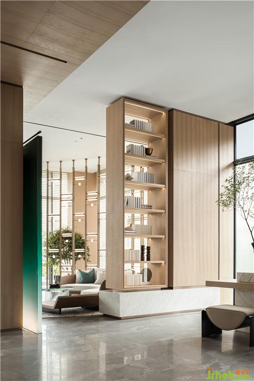 售樓處設(shè)計以來訪者之姿去思考生活,基于“一半書香,一半茶韻”為出發(fā)點,在原木飾面的氛圍營造下,呈現(xiàn)“竹林深處一杯茶,萬卷詩書腹中藏”,滌蕩心頭的陳雜過往,更有力量對抗都市的煩擾。