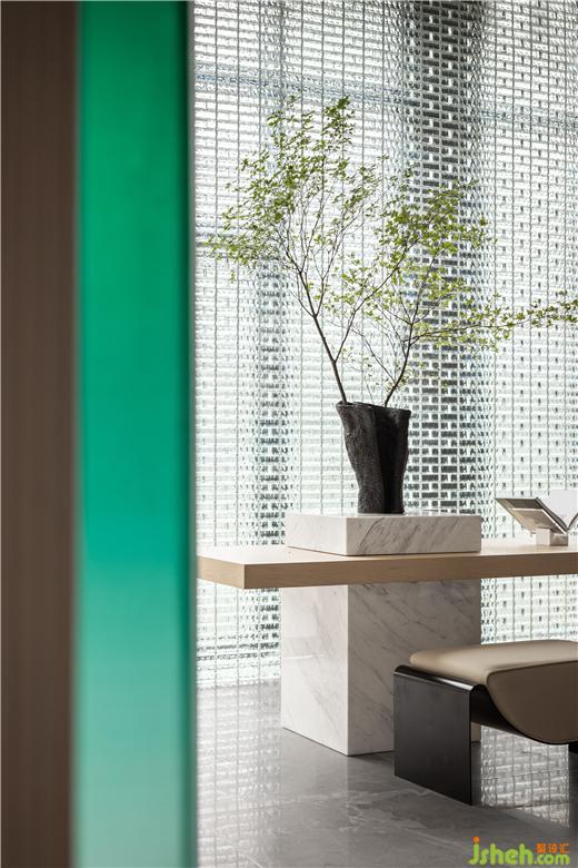 莫蘭迪認為,畫中的寂靜,緣起靈魂的沖靜。而空間的寂靜,源于通透的玻璃磚構(gòu)筑純粹的視覺語言,增加了動線曲徑通幽的體驗感,闡釋著設(shè)計師獨特的藝術(shù)體悟。