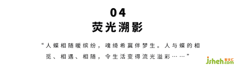 藝術(shù)創(chuàng)作需要豐富的想象力與創(chuàng)造力,基于功能性和唯美度的規(guī)劃,以“幻影”抽離現(xiàn)實(shí),以“視覺(jué)”表達(dá)感知,在靜謐的空間中,安放其中的靈動(dòng)蝴蝶,恣意穿梭空間各處,仿佛在空間里營(yíng)造出一種人與自然和諧共處的時(shí)空情緒。