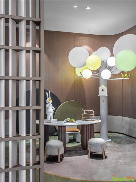 光影塑造的綠植與幾何形態(tài),建立起一片獨(dú)特且自然的兒童世界。童話的元素恰如其分地呈現(xiàn),反復(fù)運(yùn)用自然柔和色彩,在活躍的空間氛圍下,等著駐足的靈蝶,讓有趣的事物都自然而然地發(fā)生。