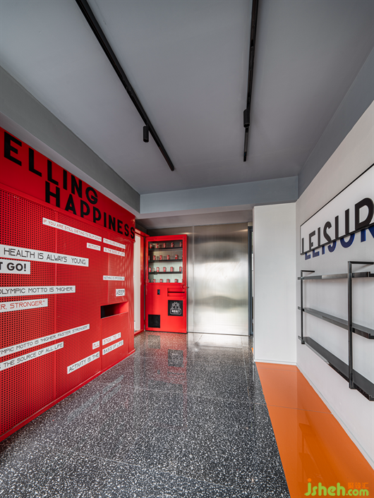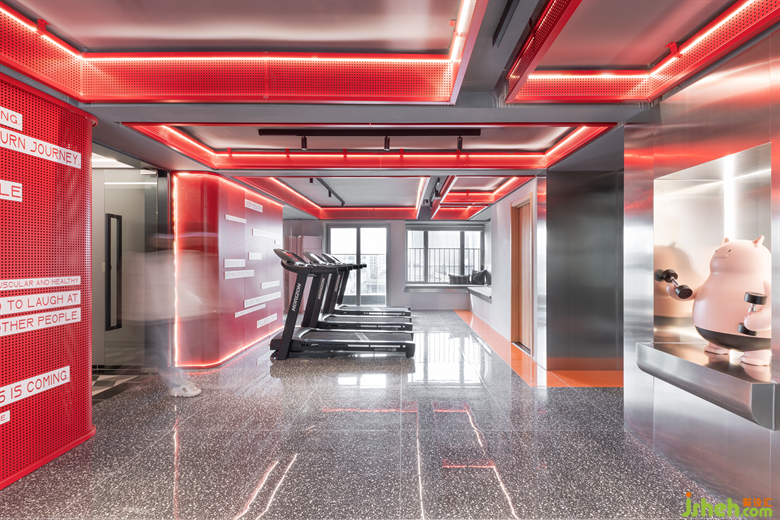 健身空間使用紅、黑的經(jīng)典搭配,以視覺沖擊和空間感取勝。奧迅摒棄一切繁瑣與浮夸的裝飾,樣板房設(shè)計將復(fù)雜性統(tǒng)一在各種直線中,營造豐富而細(xì)密的情感維系,使人們從抽象的視覺中感受未來生活的同時,在彼此交流運動心得,回歸本真狀態(tài)下生活的豐盈。